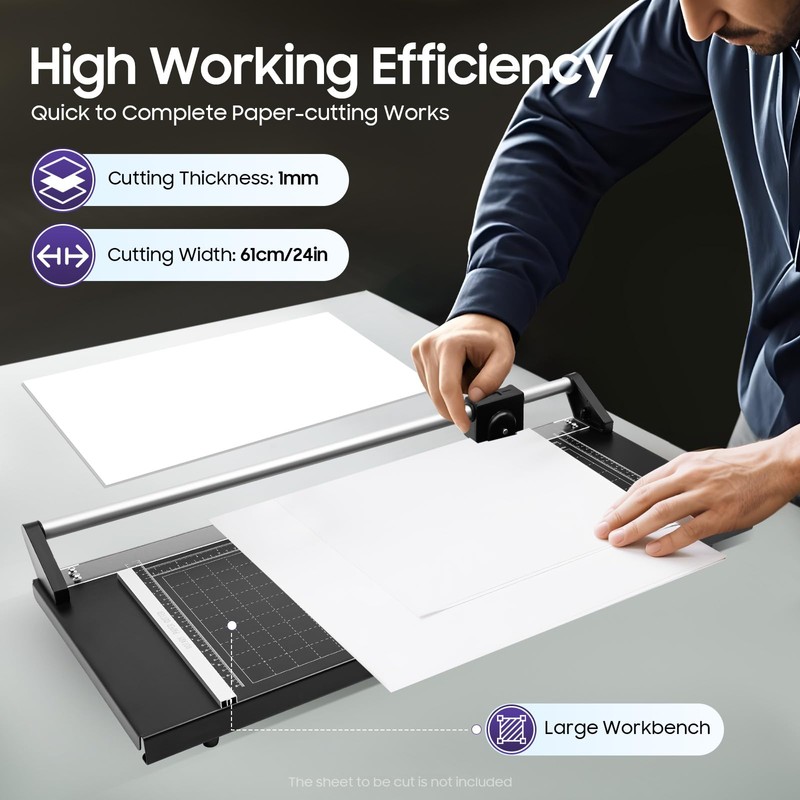 - 【Strong Applicability】: It features a generous working table size of 31.29*14.17 inches with a cutting width of 24 inches, accommodating a wide range of paper sizes up to 1mm thick. In addition, the 0-60° angle scale allows you to achieve multi-angle cutting needs, making it more flexible to use.