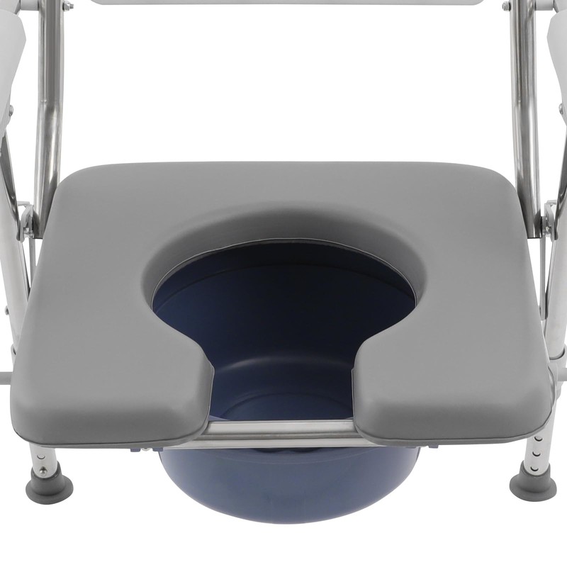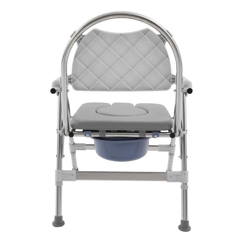 This thoughtful commode chair, specially designed for the elderly, features a sturdy stainless steel frame and durable plastic seat plate, providing users with a safe and comfortable experience. Anti-slip handrails and footpads cleverly enhance stability, effectively preventing accidental slips. The built-in toilet bowl design is both practical and aesthetically pleasing, significantly simplifying daily maintenance.