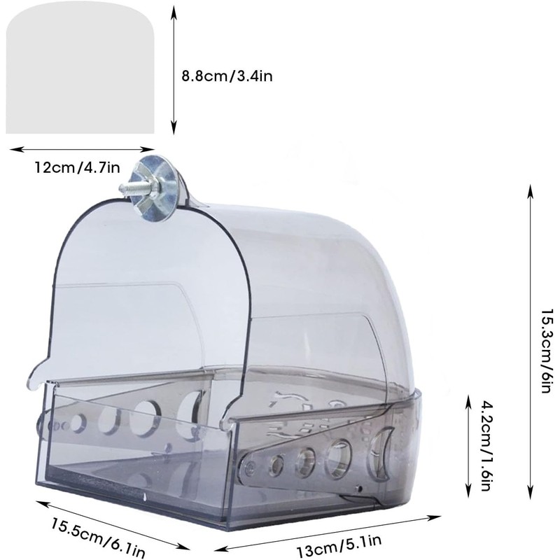 - 【Spacious Bird Bath】Measuring13x15.5x15.3cm/5.1x6.1x6.0inch", our bird bath for cage offers spacious space for your bird to enjoy a refreshing bath. Suitable for most small birdsRegular bathing can promote bird health by cleaning dirt and moisturizing their skin while helping them cool off to regulate body temperature.