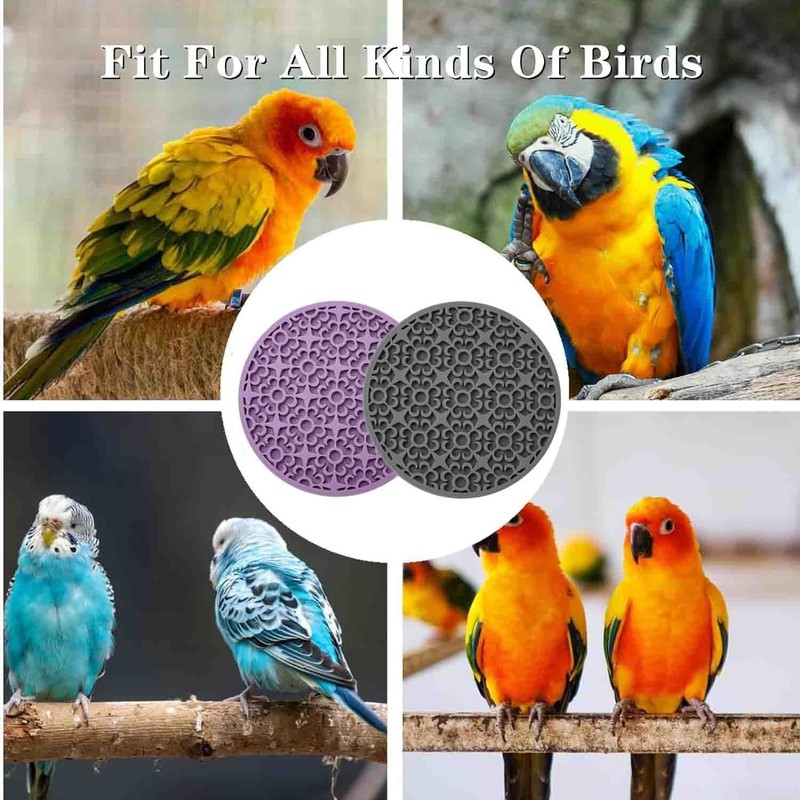 Lyfengdeam Bird Slow Feeder Mat, Interactive Foraging Puzzle Toy for Parrots, 2-Pack, Purple and Grey