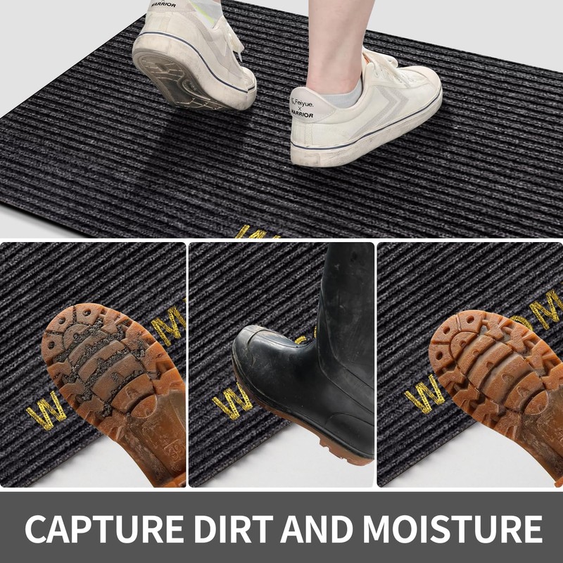 - 【Capture Dirt and Moisture】LYGLIGH Front door mats with deep groove design that efficiently block dirt, dust, debris, mud, sand, grass or other debris from entering the house. Capturing excess water in the recessed channels below shoe level from spilling onto the ground. Even in rainy, snowy or muddy weather, your home can still be kept dry and tidy.