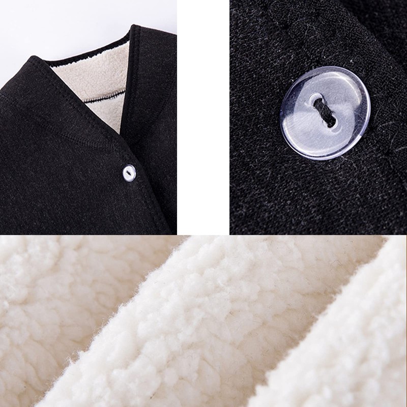 - 前開きのボタン設計ですので、着脱が簡単です。それに、丸襟でどんなコートにも合わせやすいです。特に体を冷やしたくない妊婦や高齢者にお勧めします。