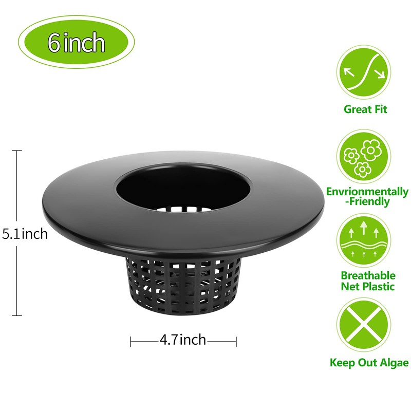 - Spacious Mesh Net Pot for Root Prosperity - The 6”wide x 4.5”deep mesh net pots for hydroponics is a paradise for plant roots. It provides an abundance of room for roots to explore and flourish. Perfect for delicate orchids and a diverse range of hydroponic veggies and fruits, the mesh promotes optimal air exchange and drainage. This creates a natural and healthy root environment, leading to stronger, more resilient plants.