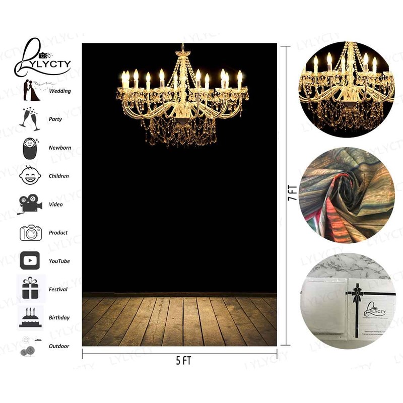 LYLYCTY 5x7ft Luxurious Crystal Chandelier Backdrop Dim Light Photography Background for Party Decor Banner Photo Booth Studio Props BJZYLY613