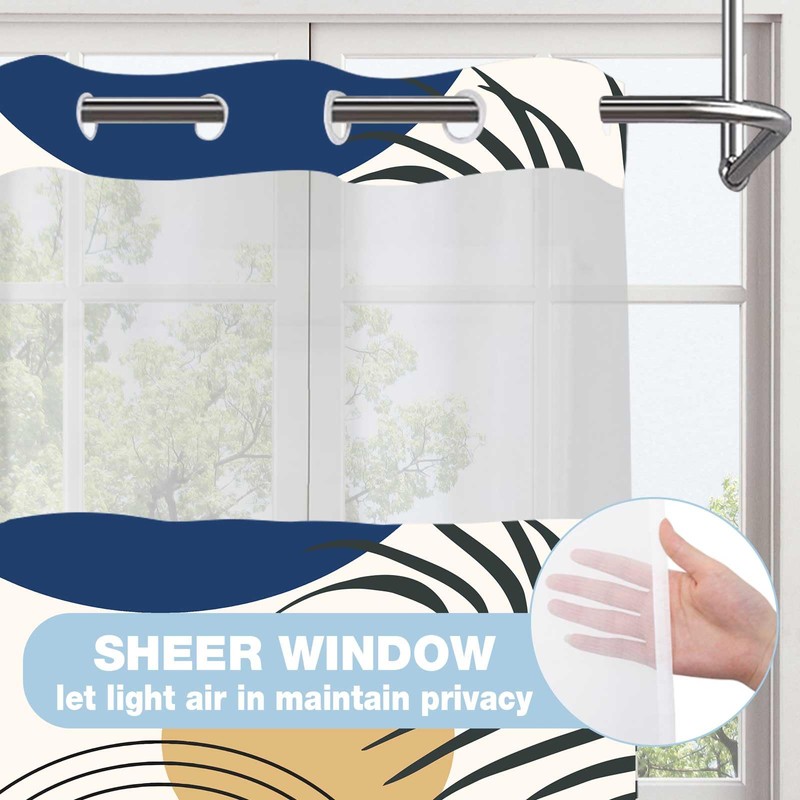 LYLYCTY No Hook Shower Curtain with Snap in Liner and Liner Set, Boho Mid Century Sun Blue Shower Curtain for Bathroom Decor 71x74 in