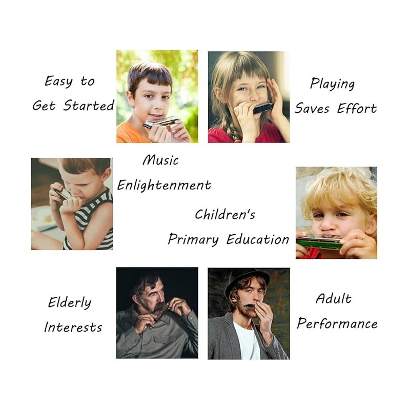 • High Quality Materials: The harmonica is made of high-quality metal and ABS, which is safe and harmless. Equipped with precision machined bronze spring leaves, it has excellent air tightness and gentle blowing effect.