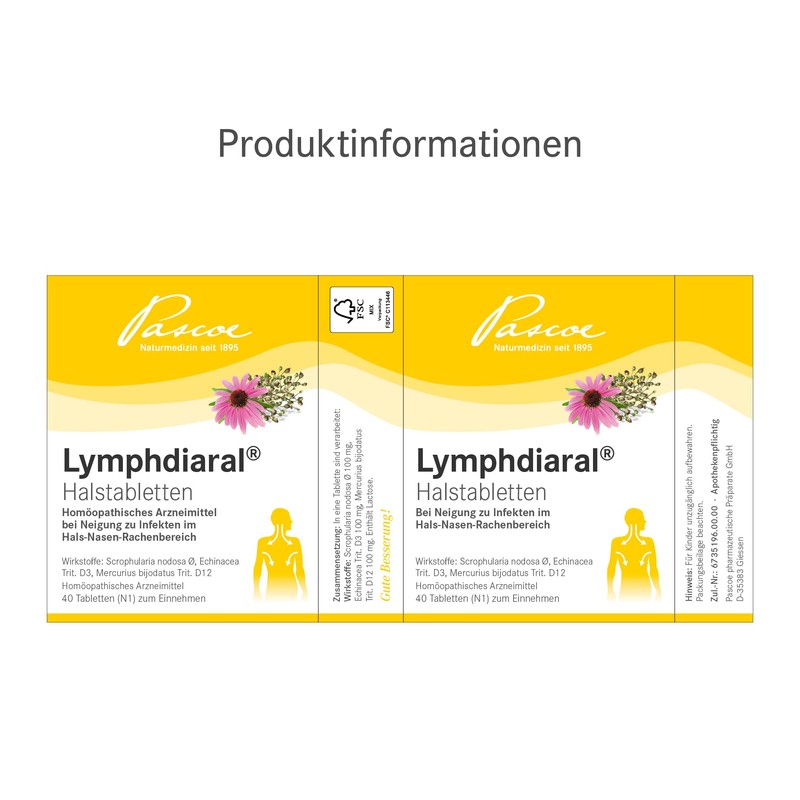 Lymphdiaral neck tablets: for the lymphatic system - for tendency to infections of the throat, nose and throat - with coneflower (echinacea) and the nodular brownroot (Scrophularia nodosa) (40