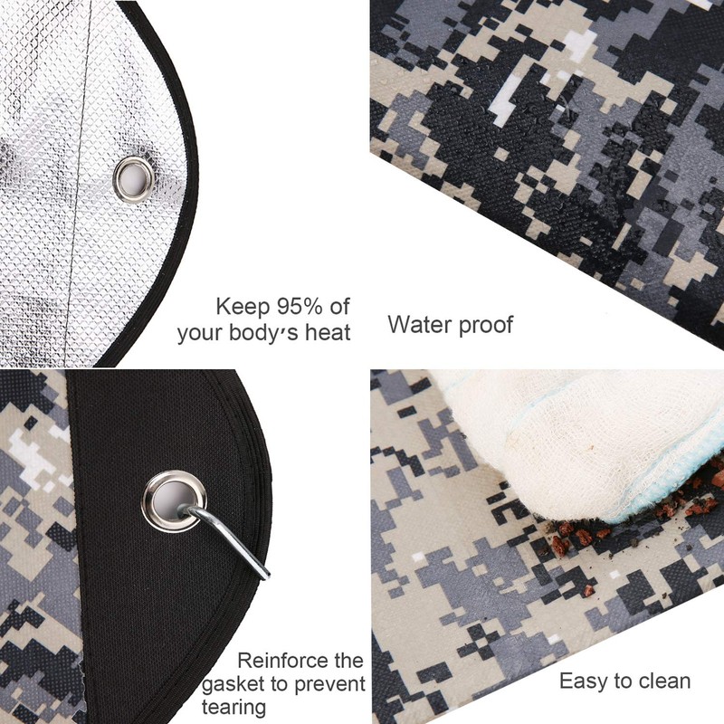 - ★Heat Preservation: One side of emergency blanket is hidden camouflage, the other side is silver. Reflective silver surface can help rescuers identifying you and retain over 95% of body heat