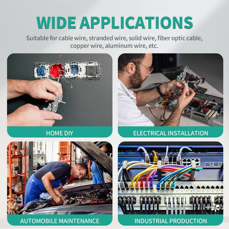 - 【Smart Wire Processing System】Calibrated stripping holes (0.5-6mm²/AWG28-10) with laser-etched gauge markers. Micro-serrated blades cut 2.5mm steel wires effortlessly. Angled jaw geometry ensures clean insulation removal without nicking copper cores - ideal for automotive wiring and control panel assembl