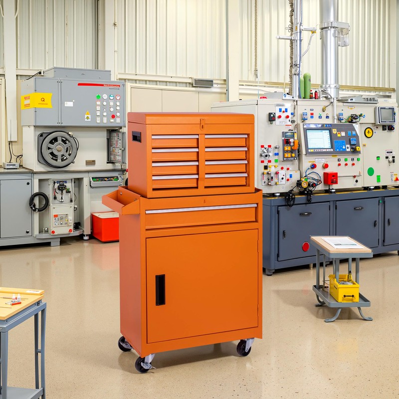 - Flexible Storage Solutions: This tool box has a top compartment with 2 handles and a bottom cabinet fitted with hand bars. The top section can be neatly stored inside the bottom cabinet, providing adaptable storage choices for a range of tools and gear.