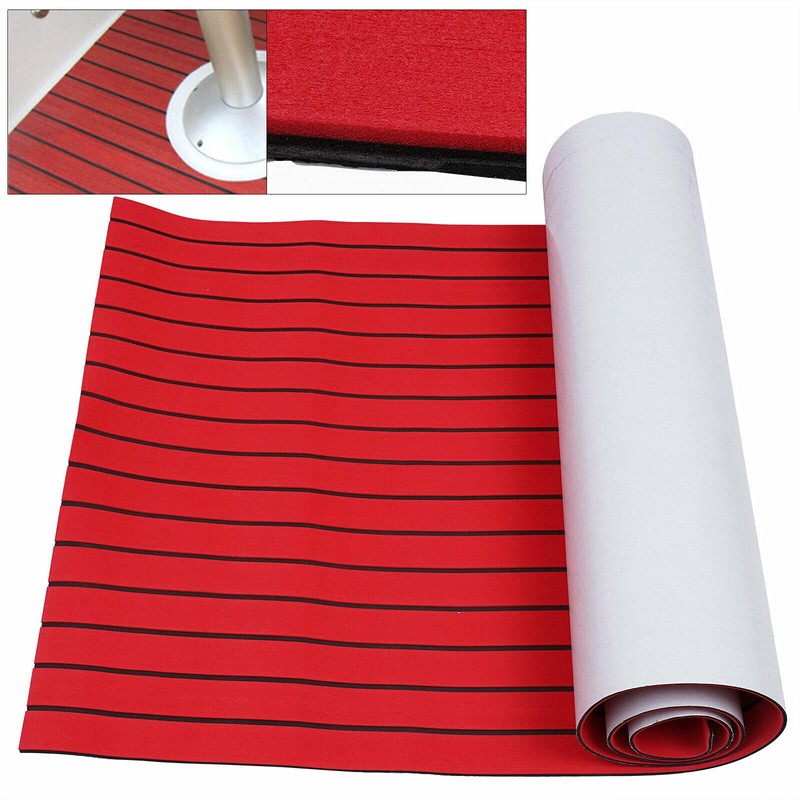 LYNICESHOP EVA Foam Teak Floor Decking Sheet Non-Slip Boat Flooring Mats with Self-Adhesive, Boat Deck Flooring Mats (Red+Black Stripe, 94.5" X 35.4")