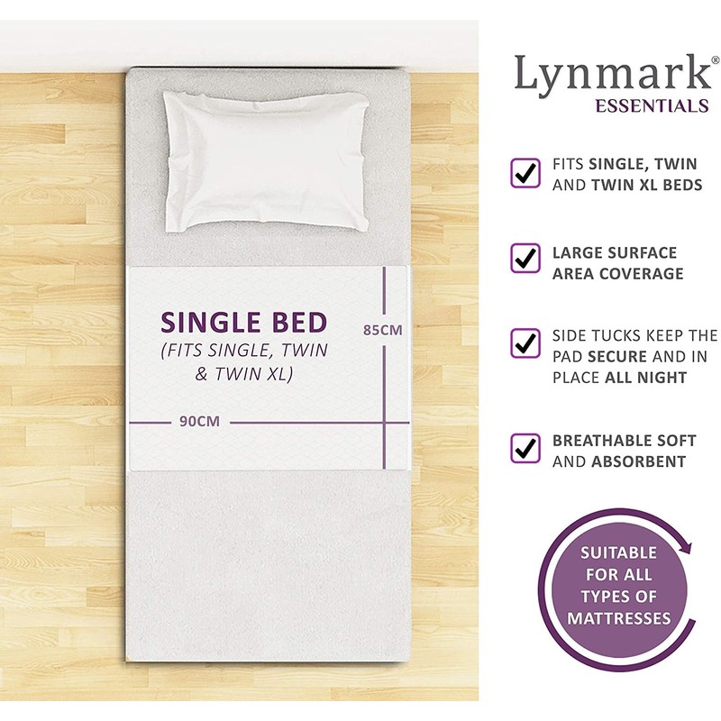 Lynmark 2x Waterproof Bed Protector with Tuck-In Flaps - Washable Bedwetting & Incontinence Sheets Absorb Up to 2 Liters - Leak-Proof OEKO-Tex Certified Cotton Mattress Pad for Single Beds - 90x85cm, White