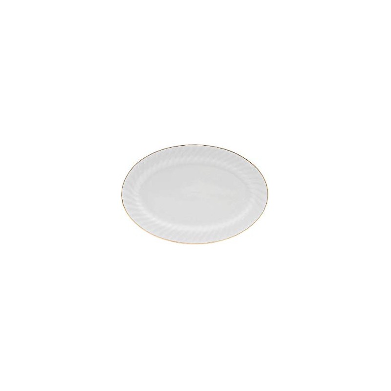 Lynns Paradise Imperial Gold 14-Inch Oval Platter, Set of 2, White; Heavy Duty; Chip Resistant; Lead and Cadmium Free; Freezer to Oven Safe up to 500°F