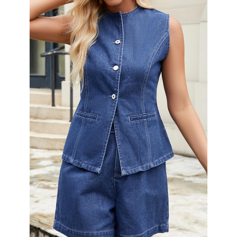 Lynroxia Sleeveless Collar Denim Jean Jacket Vest Summer Button Front Casual Denim Jackets with Pockets Blue L