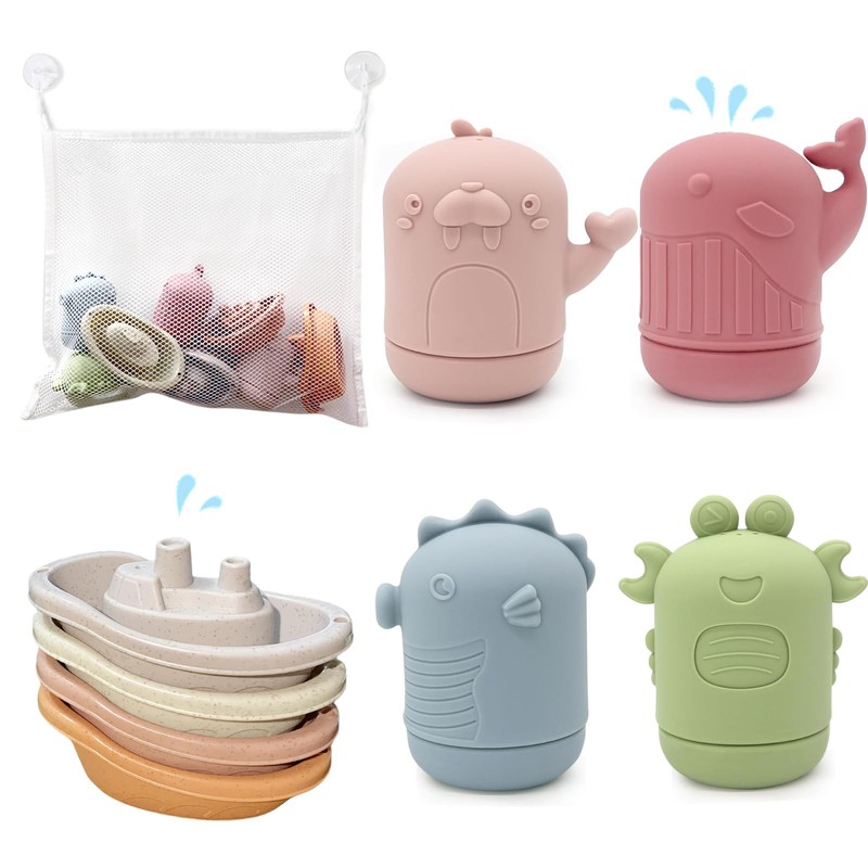 LYNSAN Badewannenspielzeug, 8 Stück Badespielzeug Baby mit Aufbewahrungstasche, Badewanne Spielzeug Boot, Wasserspielzeug Geschenke für Babys Kleinkinder Jungen Mädchen ab 6 Monate 1 2 3 Jahr
