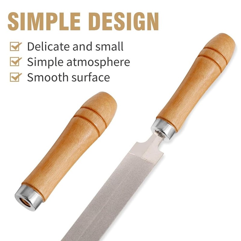 Lyntamy Wood File 15pcs Wooden File Special Handle Burr Free Steel File Round Hole Small Wooden Handle (4mm+5mm+6mm) Easy to Use