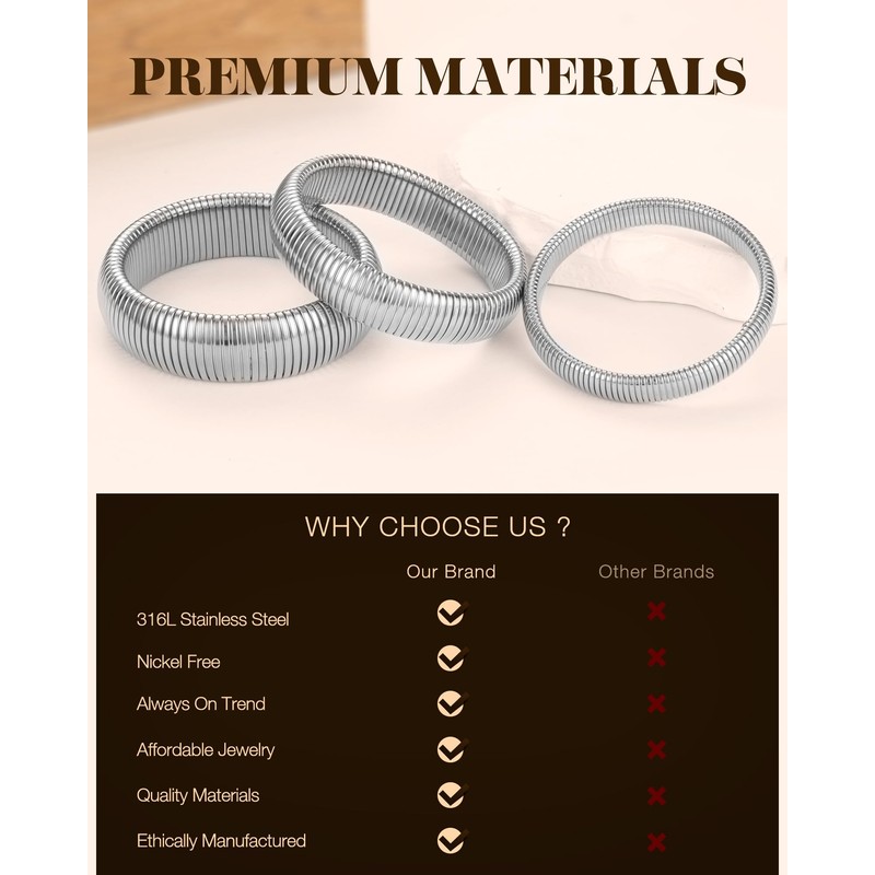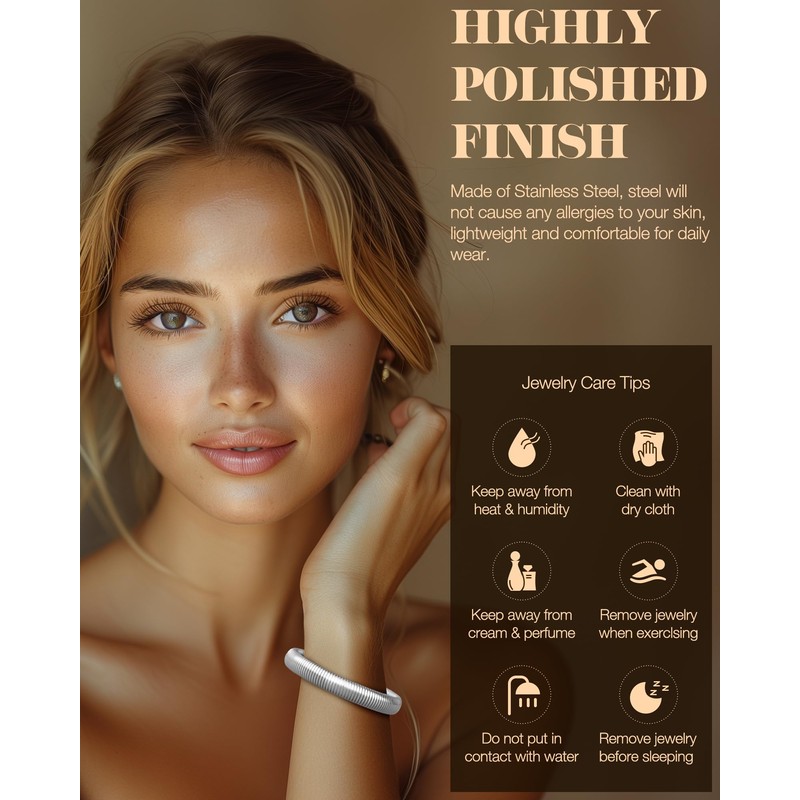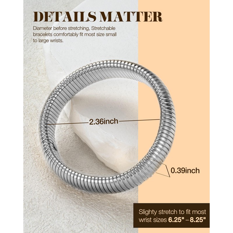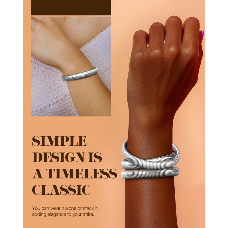 LYNYANIEE Silver Bangles for Women Stainless Steel Multilayer Bangle Bracelets Stack Stretch Wristband