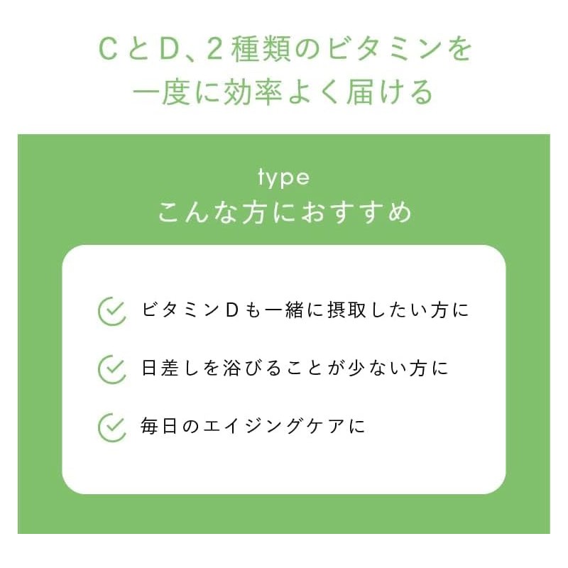 <現代人に必須の2種類のビタミンを、一度に効率良く届ける> 美容にも健康にも欠かせないビタミンCと、健康維持の観点から近年注目の高まるビタミンD。現代人に必須の2種類のビタミンを一度に効率良く補えるサプリメントが、リポ・カプセルシリーズに新登場。 ビタミンCは 1,000mg、ビタミンD3は2,000IU、とたっぷり配合。
