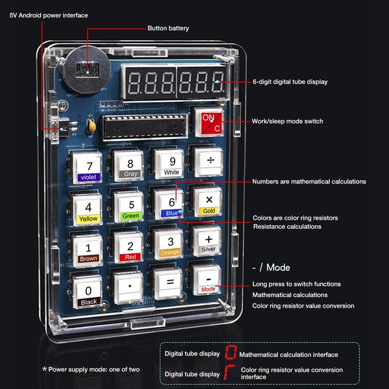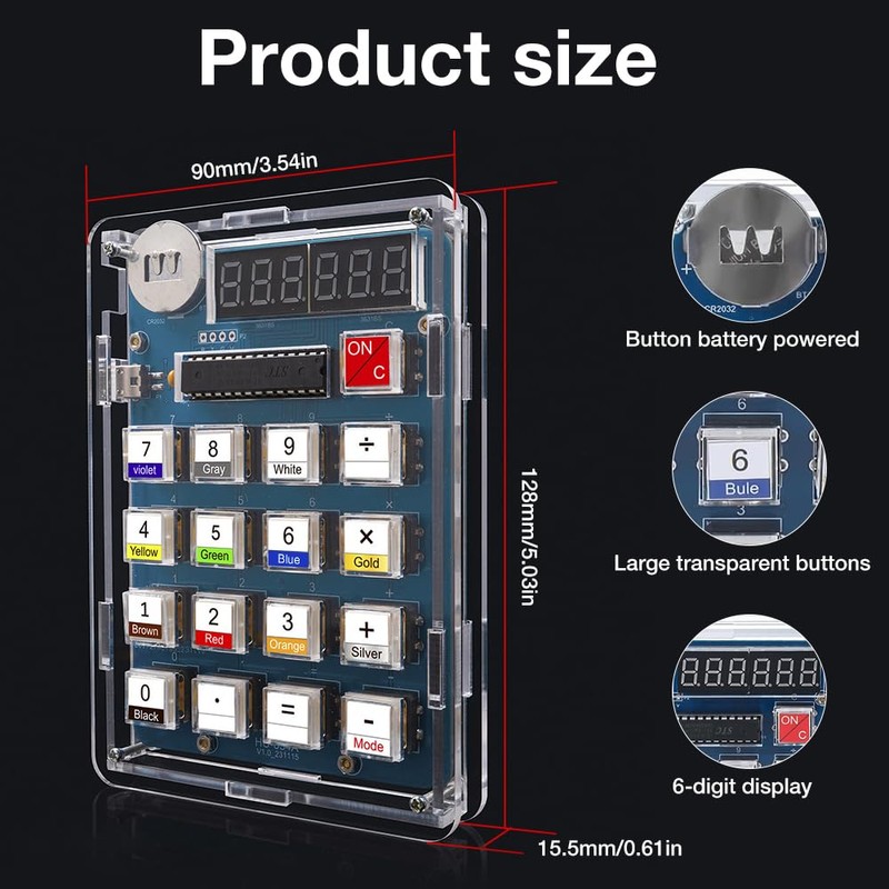 • 【6 Digit Calculator Soldering Set】: Improve your DIY soldering practice kit with the DIY soldering exercise kit, which is designed to help you make a practical desktop calculator. The transparent keycaps can protect the fonts and make the markings clear for long-term use. They are an ideal companion for learning and working.