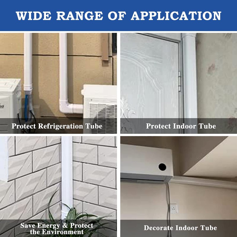 - Clean&Cut - Covers and hides unsightly refrigeration pipes on your external walls.Keep piping organized, clear up external wall for a professional installation appearance.