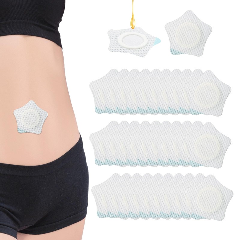Lyreh 30stk Rizinusöl-Bauchwickel, 7,5cm Selbstklebend Hochsaugfähig Vliesstoffe Rizinusöl-Bauchnabelpflaster Nur Bauchnabelpflaster Kein Waschen Nötig(Stil Fünfzackigem Stern)
