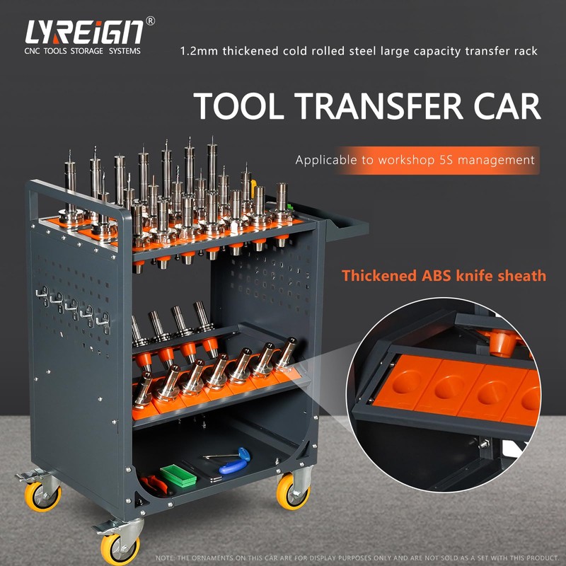 - HIGHER QUALITY: LYREIGN grey classic CNC tool cart adopts electrostatic spraying technology, and has been pickled and phosphated. The tool holder not only looks high-end and elegant, but is also rust-resistant and wear-resistant. The CNC tool cover is made of new material ABS, which has good cushioning and reduces the impact between the handle and the sleeve. The service life of the tool cart will be greatly improved.