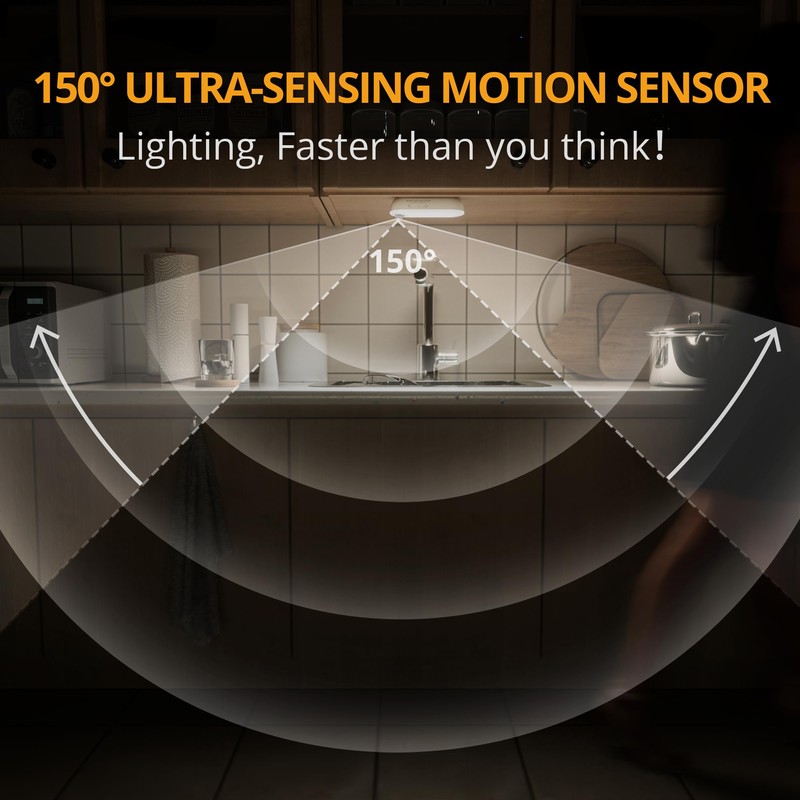 - Motion Activated: This motion sensor closet light adopts the new upgraded PIR, compared with the previous generation version, the sensing distance is increased from 10ft to 16ft, and the sensing angle is increased from 120 degrees to 150 degrees; the overall improvement rate reaches 69%, which makes the sensing more sensitive