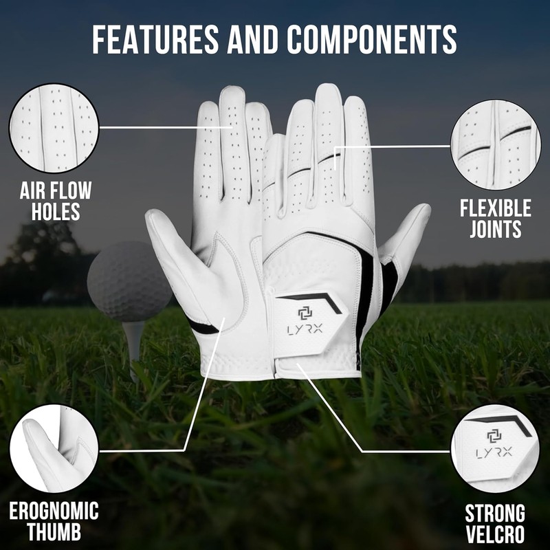 - 🔄Flexible & Ergonomic Design: Designed for natural hand movement with flexible joints and an ergonomic thumb, these Lyrx golf gloves ensure maximum comfort and precision for every swing, helping golfers elevate their game effortlessly
