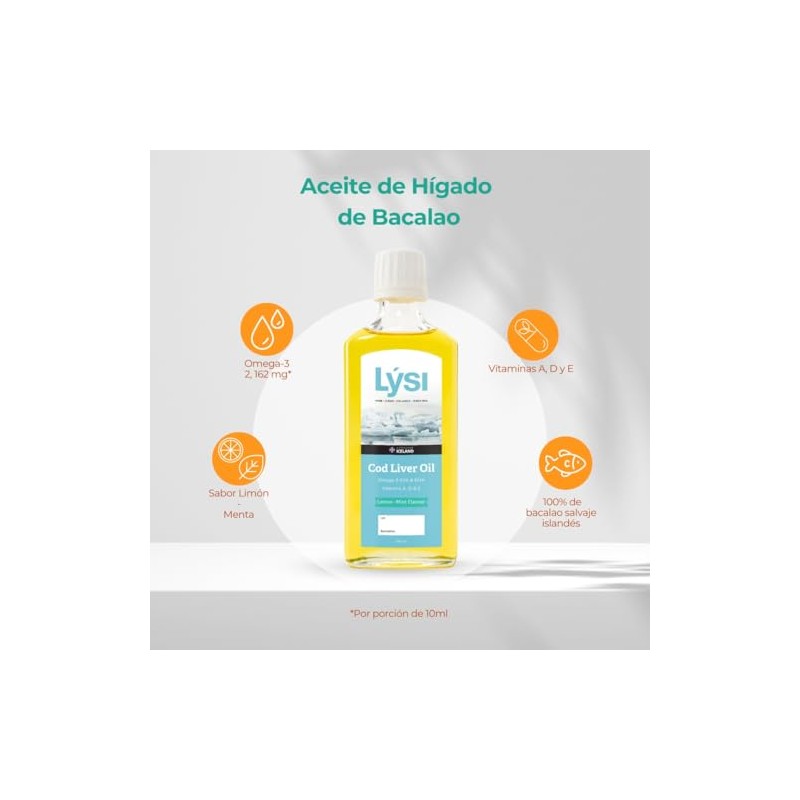 Lýsi - LÝSI, Omega 3 en Aceite de Bacalao, Contiene Vitaminas A, D3 y E, Sabor limón/menta, Para toda la familia, Contribuye a la salud cerebral, de la vista y ósea, Sin gluten y azúcar, 240 ml.. 💯 Autenticidad y máxima durabilidad comprobadas. Tecnología avanzada y rendimiento superior. 💎 Calidad superior certificada. Ideal para quienes buscan lo mejor en calidad y estilo. Producto auténtico con satisfacción total asegurada. ¡No te quedes sin el tuyo y aprovecha esta oportunidad única!