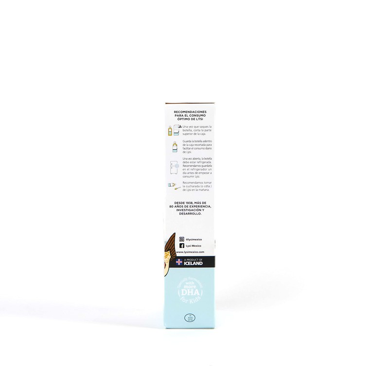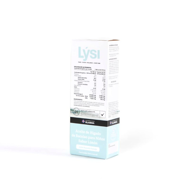 LÝSI, Omega 3 para niños en Aceite de Bacalao, Sabor limón, Contiene Vitaminas A, D3 y E, junior, desde los 6 meses de edad, Contribuye a la salud cerebral, de la vista y ósea, Sin gluten y azúcar, 240 ml.