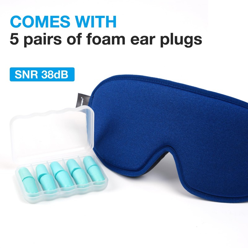 LYSIAN LYSIAN Cooling Sense 3D Sleep Eye Mask for Women Men, Eye Mask with Contoured Design with 5 Pair Ear Plugs, Block Light for Deep Sleep - Blue