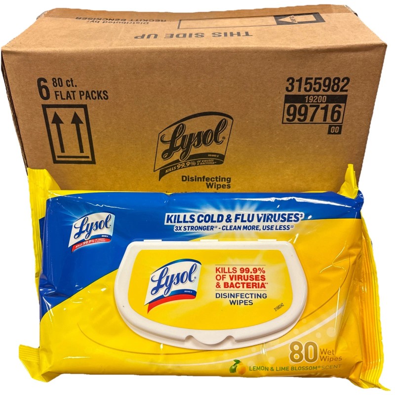 Lysol Lot Of (6) 80ct Flat Packs Lysol Lemon & Lime Blossom Scent Disinfecting Wipes