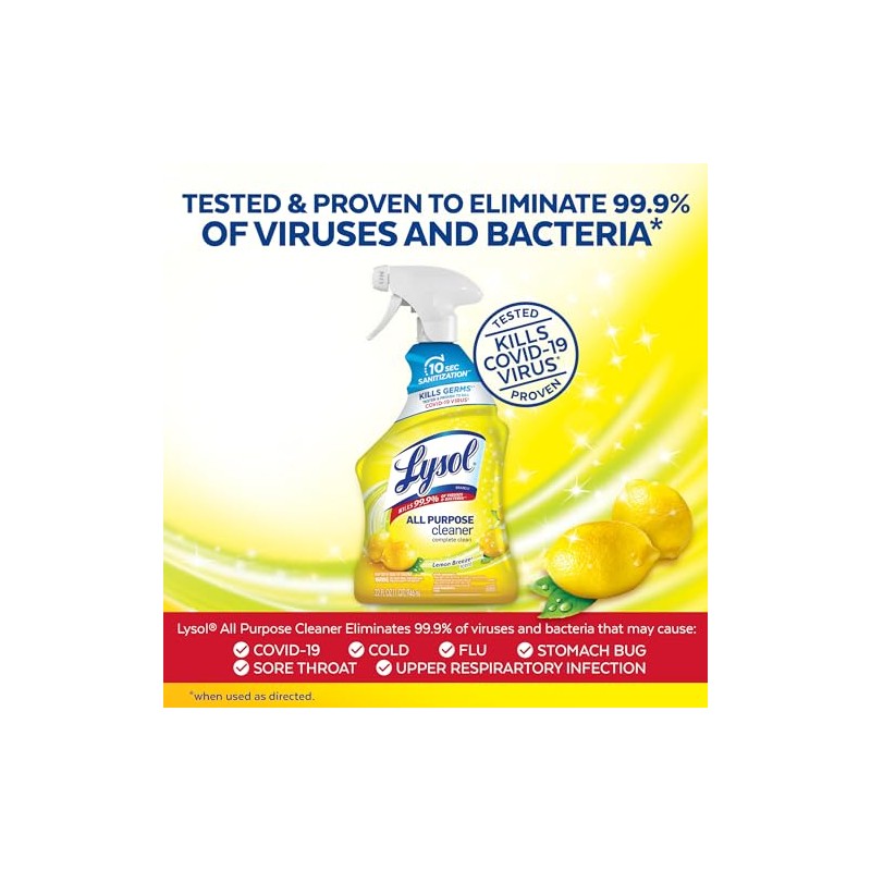 Lysol All-Purpose Cleaner eliminates viruses, bacteria, soap scum, and tough grease. From kitchens to bathrooms to common household areas, Lysol All Purpose Cleaner helps achieve fresh, healthy surfaces. Cutting through tough grease and soap scum, it kills 99.9% of germs to help provide peace of mind for busy families. Lysol All-Purpose Cleaner provides long lasting freshness and can be used on hard, non-porous surfaces in the kitchen, bathroom and other areas of the home.