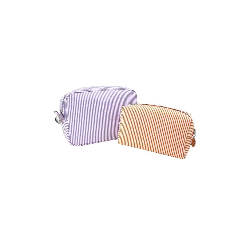 - 【Premium Material】This 2 piece set of seersucker cosmetic bags is made of soft, lightweight, skin-friendly, and easy-to-clean seersucker fabric. The zipper closure makes it convenient for everyday use and easy to pack into your backpack.