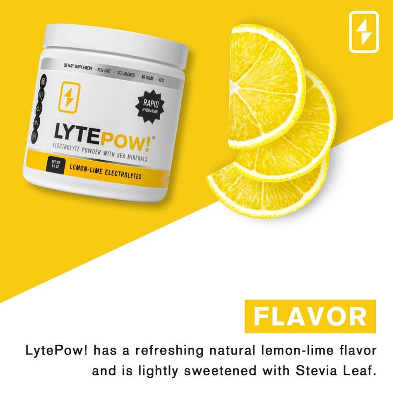 - GET HYDRATED WITHOUT EXTRA ADDITIVES OR CALORIES: LytePow! is an electrolyte-replenishing, sea mineral powder concentrate created for health-focused people who don't want unnecessary additives or calories in their electrolyte products. Great tasting, natural lemon lime flavor, lightly sweetened with stevia leaf.