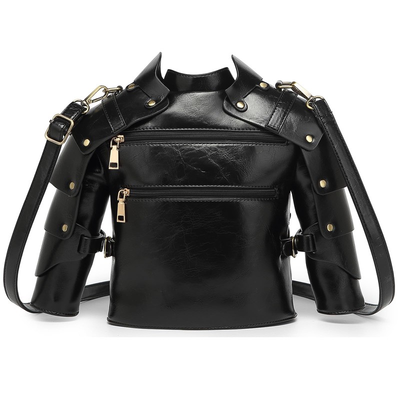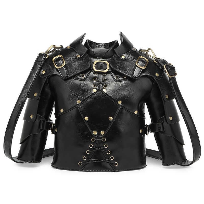 Lyuxhetaokdiq Men and Women Armour Shaped Crossbody Shoulder Bag PVC Weird Unique Novelty Steampunk Armor Purse, Black