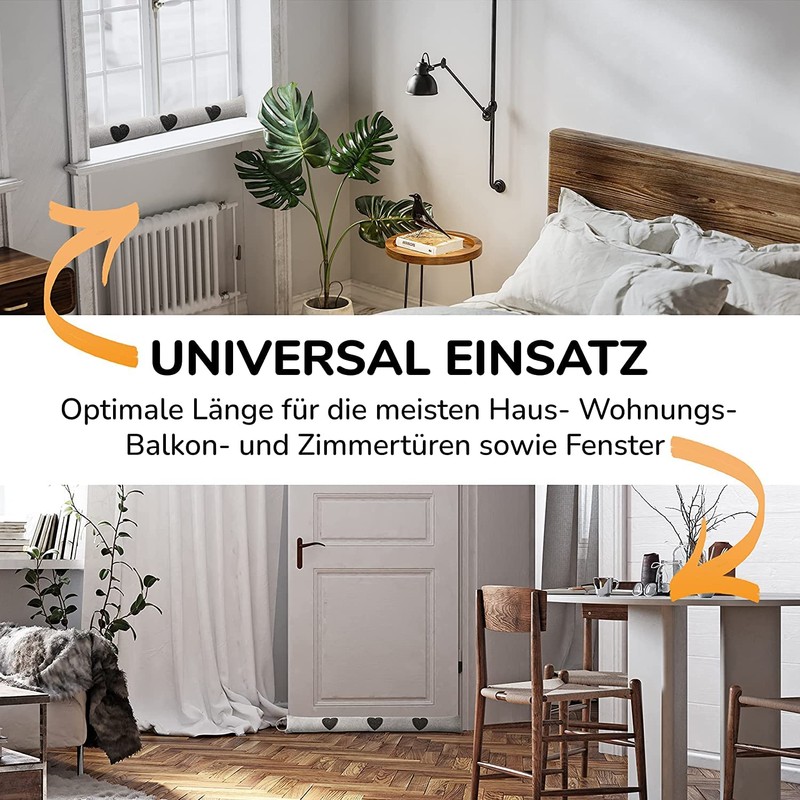 • Save more money – with the best contact with door and window, save on heating costs, in addition to 3 instead of 2 fastening knots, this is achieved by an optimal draught excluder door weight of only 400 g to prevent loss of contact