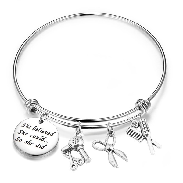 Lywjyb Birdgot Hairdresser Gift Hair Stylist Gift Cosmetology Graduation Gift She Believed She Could so She Did Bracelet (Hair Stylist Bracelet)