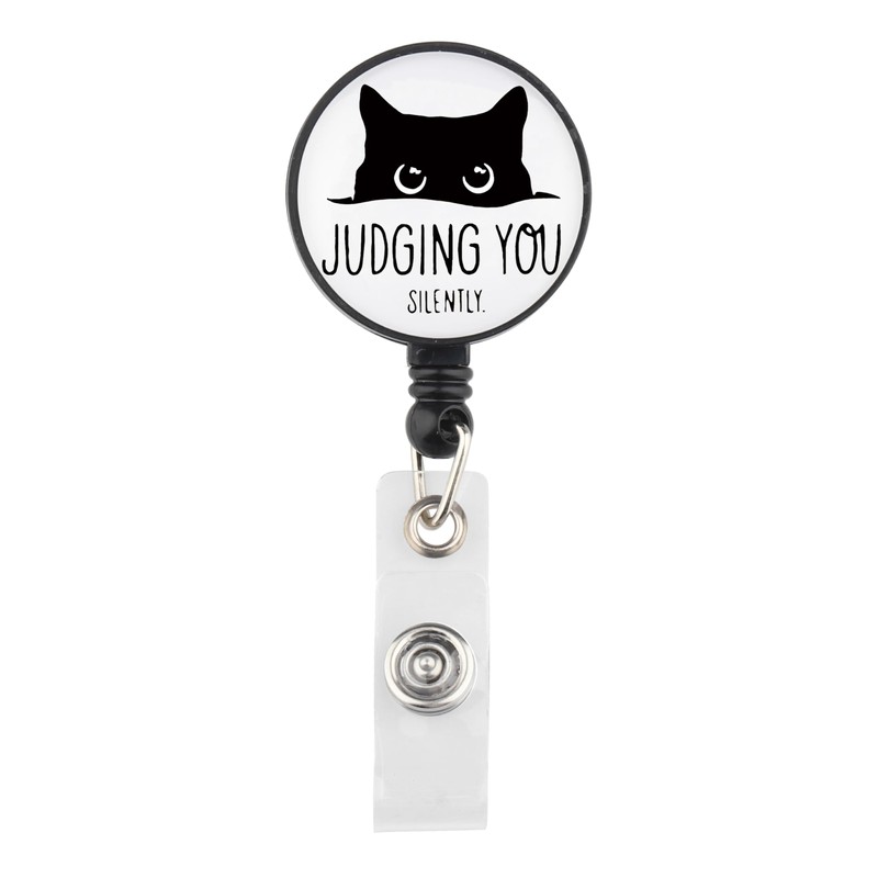 Lywjyb Birdgot Sarcastic Cat Badge Reel Animal Lover Gift Judgmental Cat Merch Cat Judging You Silently Merch (Judging Badge CA)