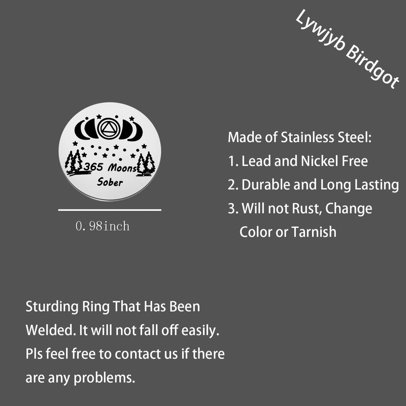 Lywjyb Birdgot Sobriety Gift 365 Days Sobriety Token Sobriety Coin Sober Gifts for Men Women (365 Moons Sober)