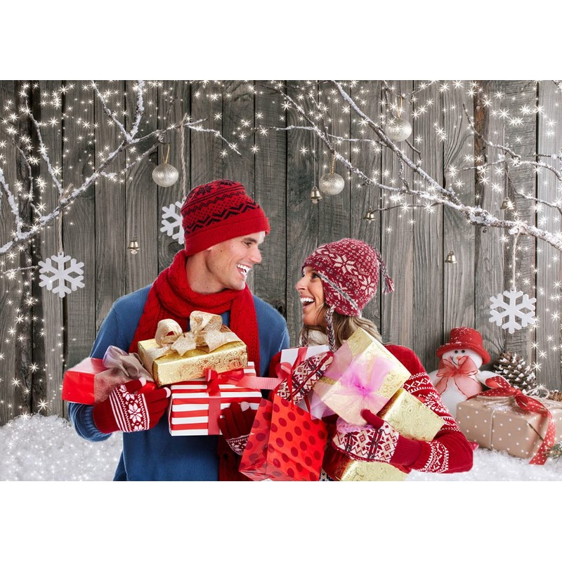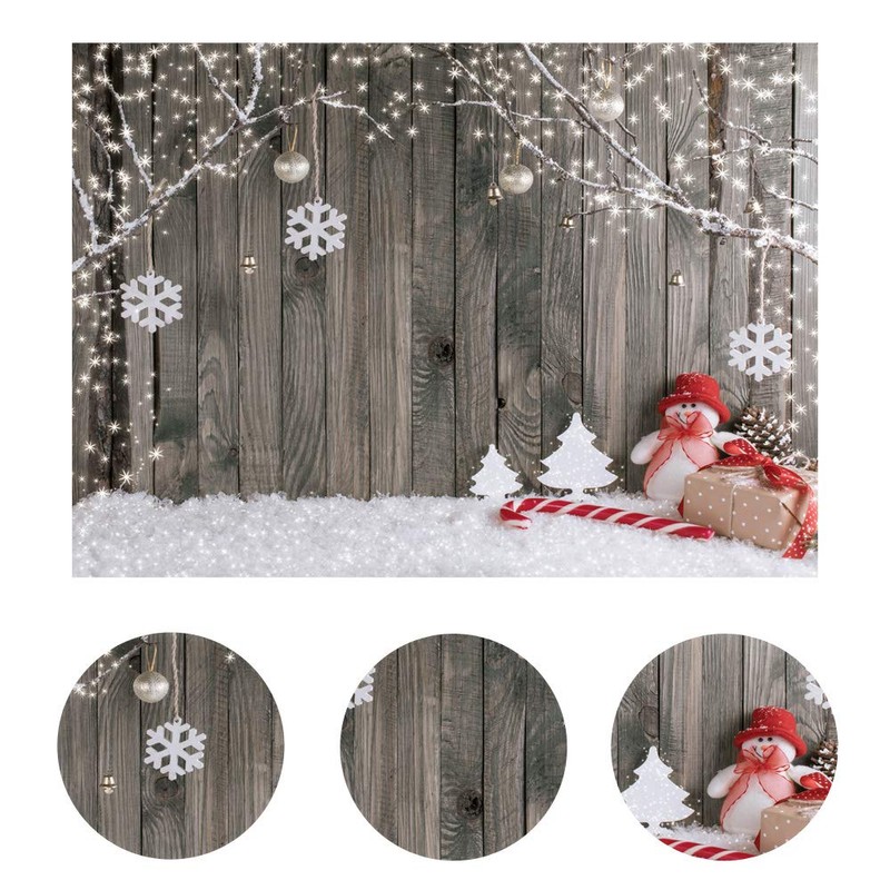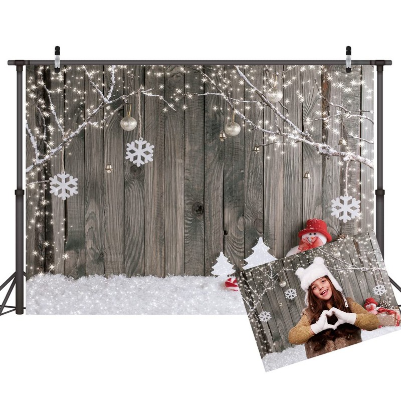 LYWYGG 8X6FT Christmas Background Christmas Backdrop Snow Floor Photo Backgrounds Wooden Wall Photography Backdrops for Child CP-70-0806