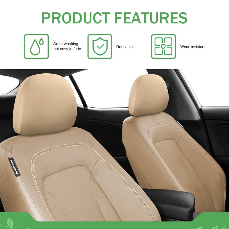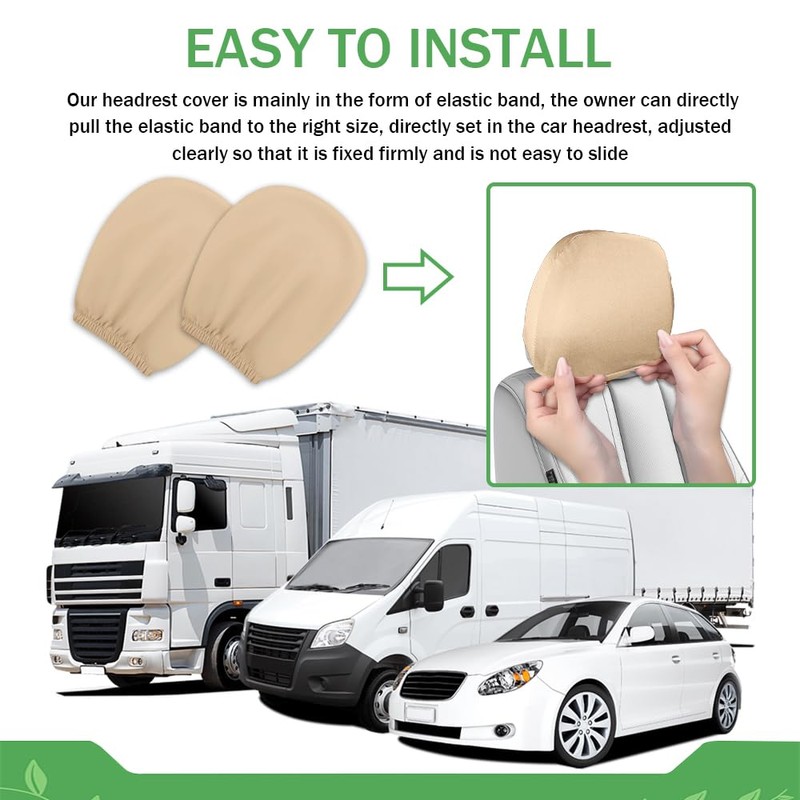 Lyxheth 2PCS Car Headrest Cover, Headrest Protectors, Stretchy Fabric Car Seat Headrest Cover for Protect & Avoid Scratches, Removable Head Rest Covers for Auto Seat for Most Vehicles (Beige)