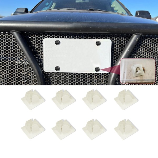 Lyxheth 8PCS Nylon License Plate Screw Inserts, License Plate Nuts, License Plate Nut Bracket Clip Fasteners, Car Accessories Self-Tapping Nuts Insert Bracket Clip for Front&Back License Plates(White)