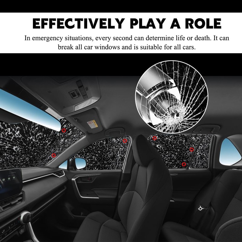 - [Product Design]:Our emergency car escape tool tungsten steel head hardness up to 65, built-in high-pressure gun-type spring, with a strong impact, just one click, the window breaker hammer can instantly shatter the solid window glass, is an essential safety tool for automotive emergencies