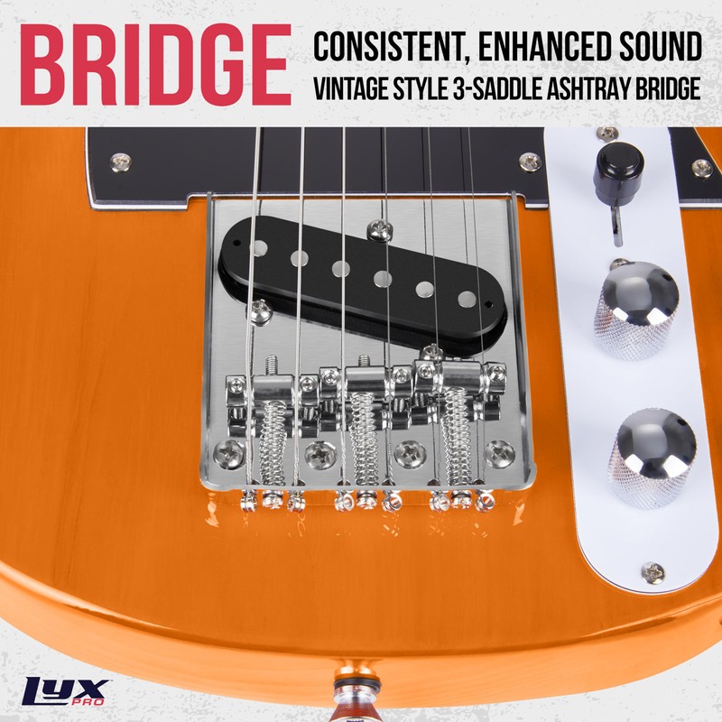 LyxPro 30” Electric Guitar TL Series, Full-Size Paulownia Wood Body, 3-Ply Pickguard, C-Shape Neck, Ashtray Bridge, Quality Gear Tuners, 3-Way Switch & Volume/Tone Controls, 2 Picks Included, Mahogany