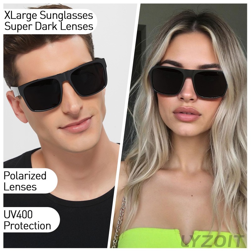 - XL Sunglasses for Big Heads: LYZOIT Super Dark Black Sunglasses made with a wide frame sunglasses design, they cater to those in need of sunglasses for extra large size. These mens xl blackout sunglasses provide both maximum comfort and durability.