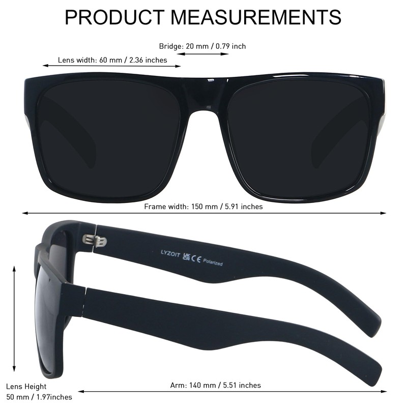 - HIGH QUALITY - LYZOIT Big Square Sunglasses used lightweight plastic material have a durable frame, not easily deformed, long wear does not press nose give you a unique and comfortable wearing experience. The box shape frame is suitable as high fashion accessory and daily wear.