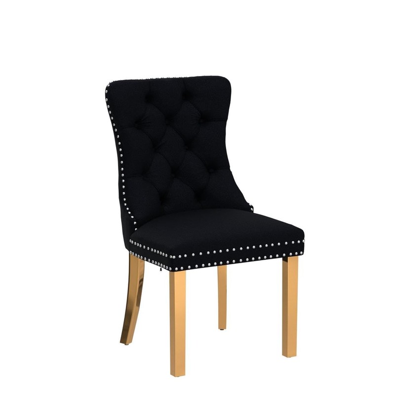 LZ LEISURE ZONE Velvet Dining Chairs Set of 2, Upholstered Accent Chairs with Gold Metal Legs, Nailhead Trim, Back Ring Pull and Button Tufted, Seat Height 20", Black+Gold