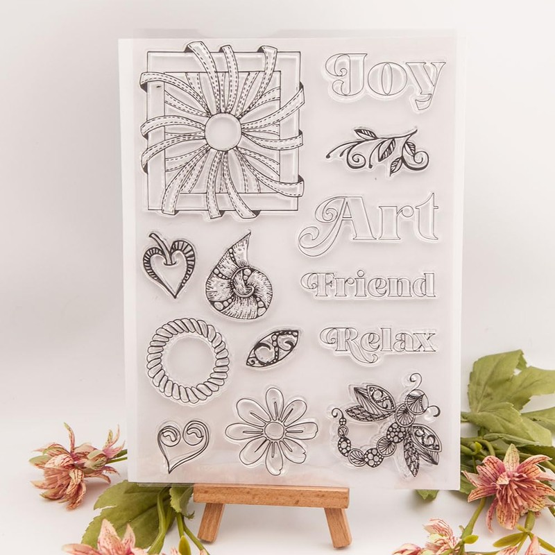 LZBRDY Flower Leaves Circle Square Shell Patterns Art Joy Wishes Words Clear Stamps for Card Making and Scrapbooking, Arts Crafts Silicone Stamps