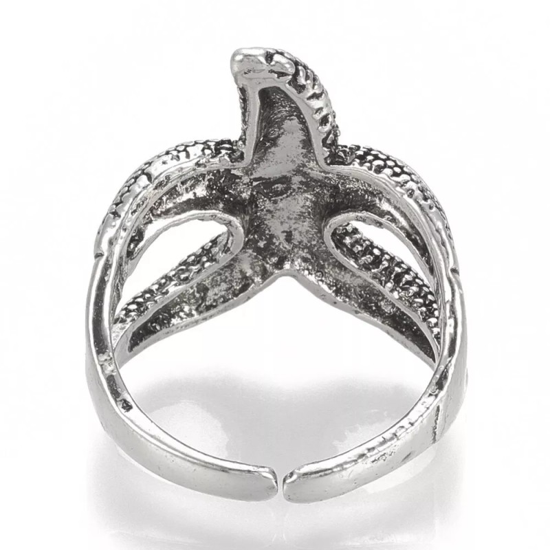 LZD Cuff Finger Ring Wide Ring Starfish Antique Silver Size 8 Adjustable 18.5mm P403